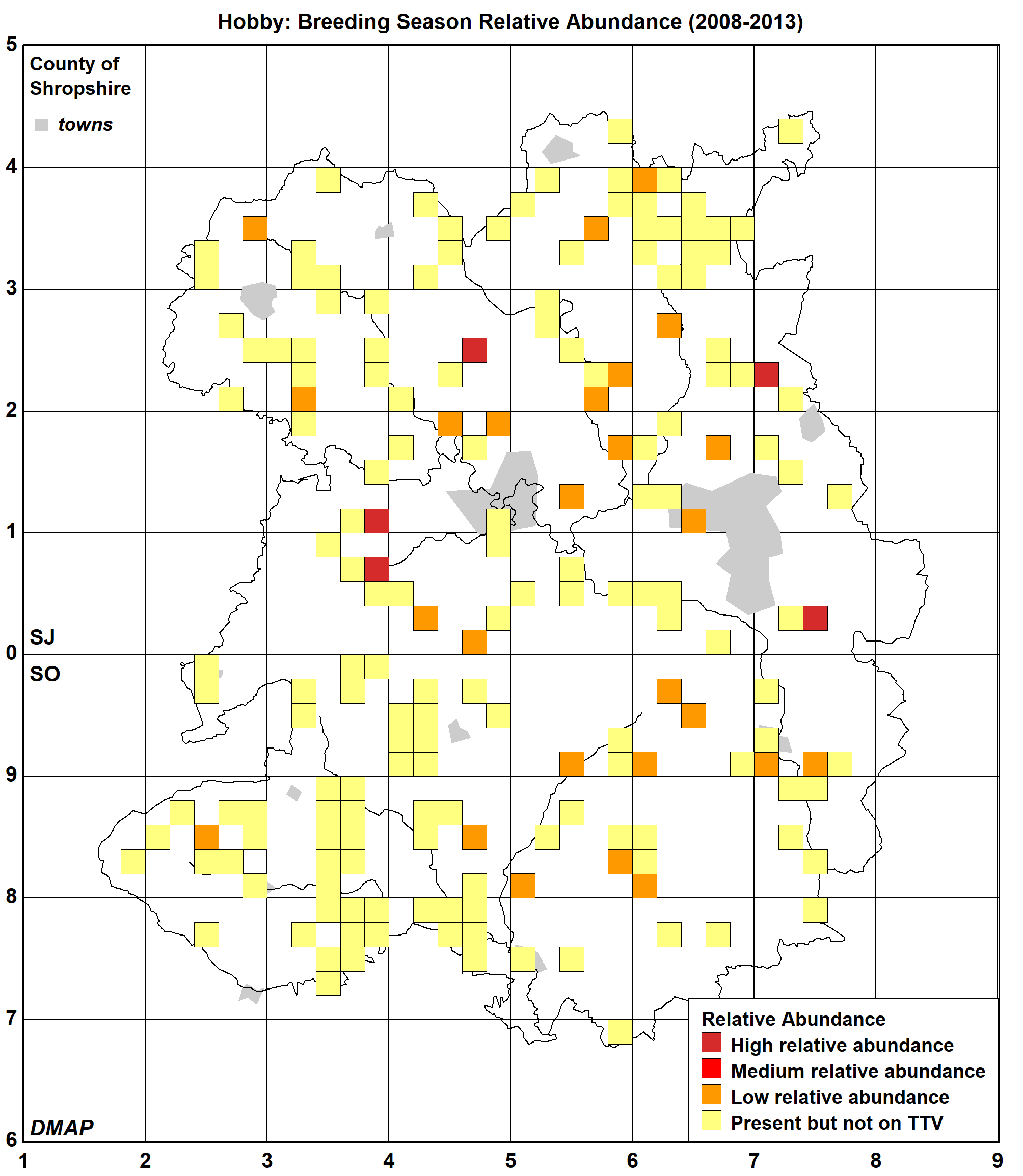 Hobby_ Breeding Season Relative Abundance (2008-2013)